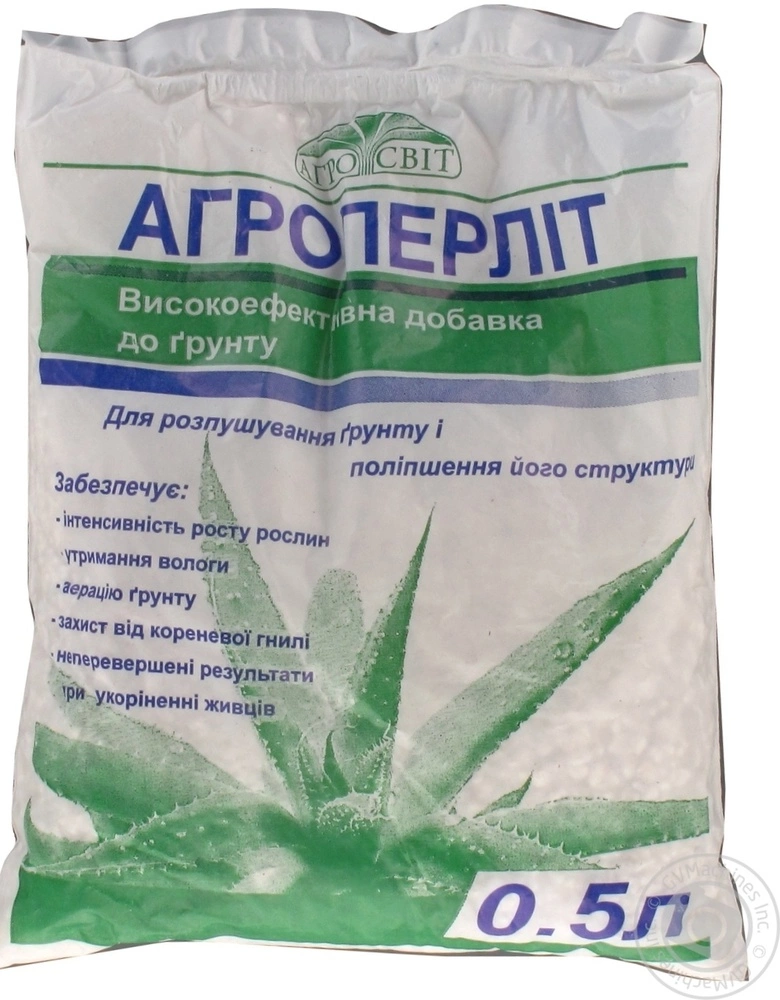 *Для добавок в земельні суміші при горшковому вирощуванні рослин. Структура грунту і умови життєдіяльності рослин поліпшуються, земля стає більш пружною і вологоємкісною. Значно покращує повітропроникність грунту. Незамінний при вирощуванні рослин в глухих горщиках. Залежно від виду рослин і ґрунту нормальна кількість перліту в горщику - 10-30% обсягу.