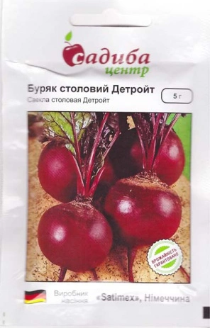 Детройт - популярний сорт столового буряку. Коренеплоди округлої форми. Сорт призначений для споживання у свіжому вигляді та переробки. Придатний для раннього вирощування. Висока стійкість до стрілкування. Коренеплоди однорідні, темно-червоного кольору, без радіальних кілець, середньою вагою 0,25-0,3кг. Висівати 15 насінин на метр, міжряддя 30см.