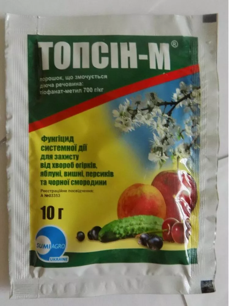 Топсін-М характеризується системним впливом на захворювання та швидким проникненням і розприділенням по оброблених рослинах. Він діє профілактично, лікує та викорінює інфекцію.