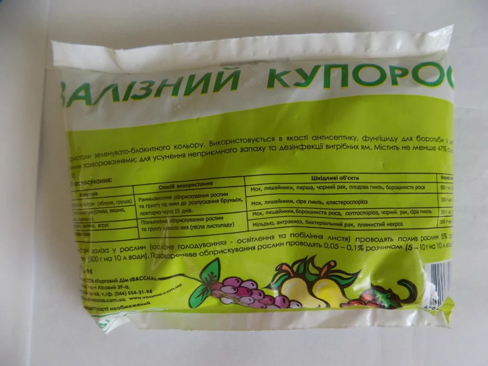 Щоб справитися з грибковими захворюваннями застосовують більш слабкий розчин (30 г залізного купоросу на 10 л води). Обробки проводять 2-3 рази, кожні 5-7 днів.