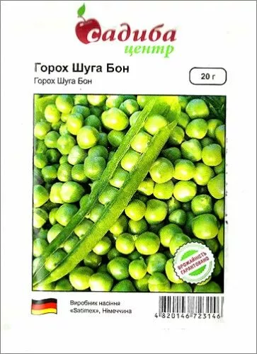 Шуга Бон - середньо-ранній сорт гороху. Період від повних сходів до технічної стиглості 50-60 днів. Стебло середньої довжини. Боби в технічній стиглості світло-зелені, довжиною 7-9 см, без пергаментного шару, ніжні, соковиті. Насіння в бобі 6-8 штук. Смакові якості свіжих бобів відмінні.