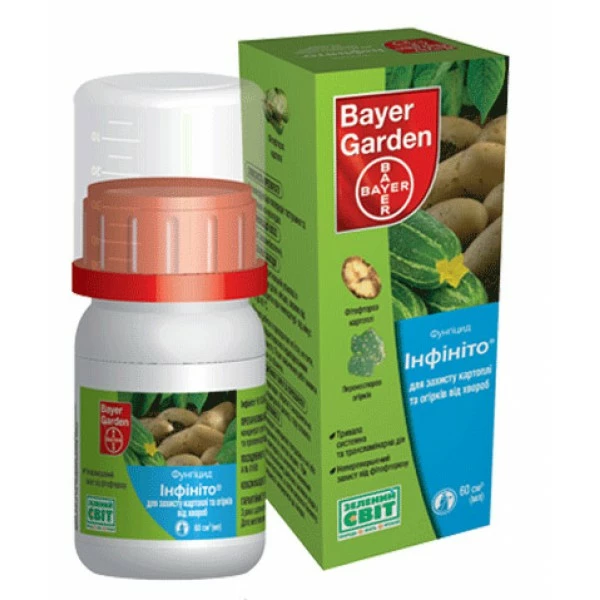 Инфинито – препарат, имеющий действующее вещество – флюопиколид, которое принадлежит к новому химическому классу и имеет уникальный механизм действия на грибы класса Оомицетов. Препарат разрушает соединение клеточного каркаса клеточной стенки, чего не может ни один из существующих фунгицидов. Действие препарат распространяется на все стадии развития патогенна, в том числе на зооспоры и оба способа заражения – прямой (через спорангии) и непрямой (через зооспоры). Он имеет трансламинарное действие, проникает глубоко в растение, перемещаясь между клеток.