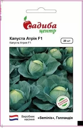 Атрія F1 - середньопізний гібрид. Відмінний для переробки, вживання у свіжому вигляді і зберігання. Достигає через 115-120 днів після пересадки. Качани округло-плоскі, масою 4-8кг, з відмінною внутрішньою структурою. Толерантний до враження трипсами і стійкий до фузаріозу.