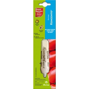 Консенто — препарат, який містить діючу речовину фенамідон з класу імідазолінонів з мезостемним механізмом дії та пропамокарб-гідрохлорид з класу карбаматів з системним механізмом дії.
