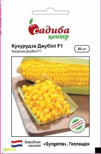 Джубілі F1 - середньоранній сорт цукрової кукурудзи для отримання продукції в літній і осіній періоди. Середня кількість днів вегетації-81. Висока якість і високий вихід продукції. Качан має довжину 23 см і 18 рядів зерен. Стандарт перевірений часом, чудова якість та забарвлення.