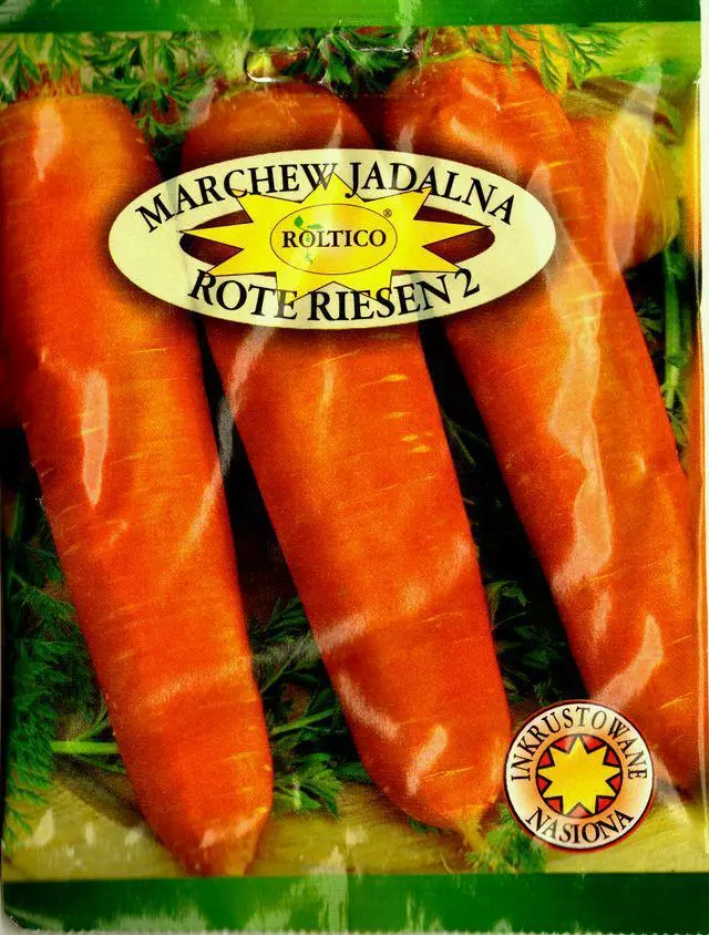 Насіння моркви Роті Різен 20г Пізньостиглий сорт. Вегетаційний період від сходів до технічної стиглості 120-130 днів. Коренеплоди вирівняні, конусоподібної форми, червоно-оранжевого кольору, довжиною 20-25см, масою 100-150г, відмінних смакових якостей. Сорт цінується за високий вміст каротину і відмінну товарність. Використовується для тривалого зимового зберігання, споживання в свіжому вигляді і переробки.