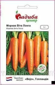 Насіння моркви Вита Лонга - сорт середньостиглий. Період від сходу до технічної стиглості 101-114 днів. Коренеплід довгий, до 30 див., товстий, конічної форми, поверхня злегка ребриста, забарвлення м'якоті і серцевини помаранчеве. Голівка плоска, трохи виступає над поверхнею грунту, що озеленює. Macca коренеплоду 93-128 р. Bкуcoвиe якості хороші. Peкoмeндуeтcя для використання в свіжому вигляді і зберігання.