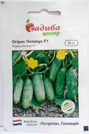 Октопус F1 - високовражайний гібрид огірка корнішонного типу з тривалим терміном плодоношення. Вегетаційний період 45-48 днів. Найкращий для засолювання та маринування. Плоди темно-зелені, циліндричні. Не змінюють колір під час тривалого зберігання та транспортування. Призначений для реалізації у свіжому вигляді, для переробки і консервації.