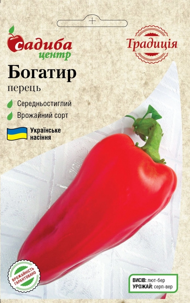 Солодкий перець «Богатир» відноситься до середньостиглих сортів. Час між першим масовим появою сходів до стиглості (технічної) плодів проходить близько 125-135 днів, а біологічна стиглість настає через 145-160 дня.