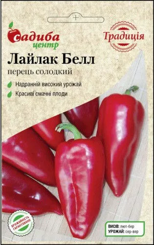 Перець лайлак Белл 0,3 г - сорт солодкого перцю з дуже раннім терміном дозрівання, у якого вегетаційний період становить від 88 до 103 днів. Кущ потужний і здоровий, а вершина до 60 см. Плоди перцю товстостінні, масою до 150 г, конусної форми, темно-вишневого кольору. М'якоть у плодів дуже ароматна і соковита. Культура дуже теплолюбна і вологолюбна. Рекомендується вирощувати на сонячних ділянках, захищених від вітру. Вживають в свіжому вигляді або для консервування.