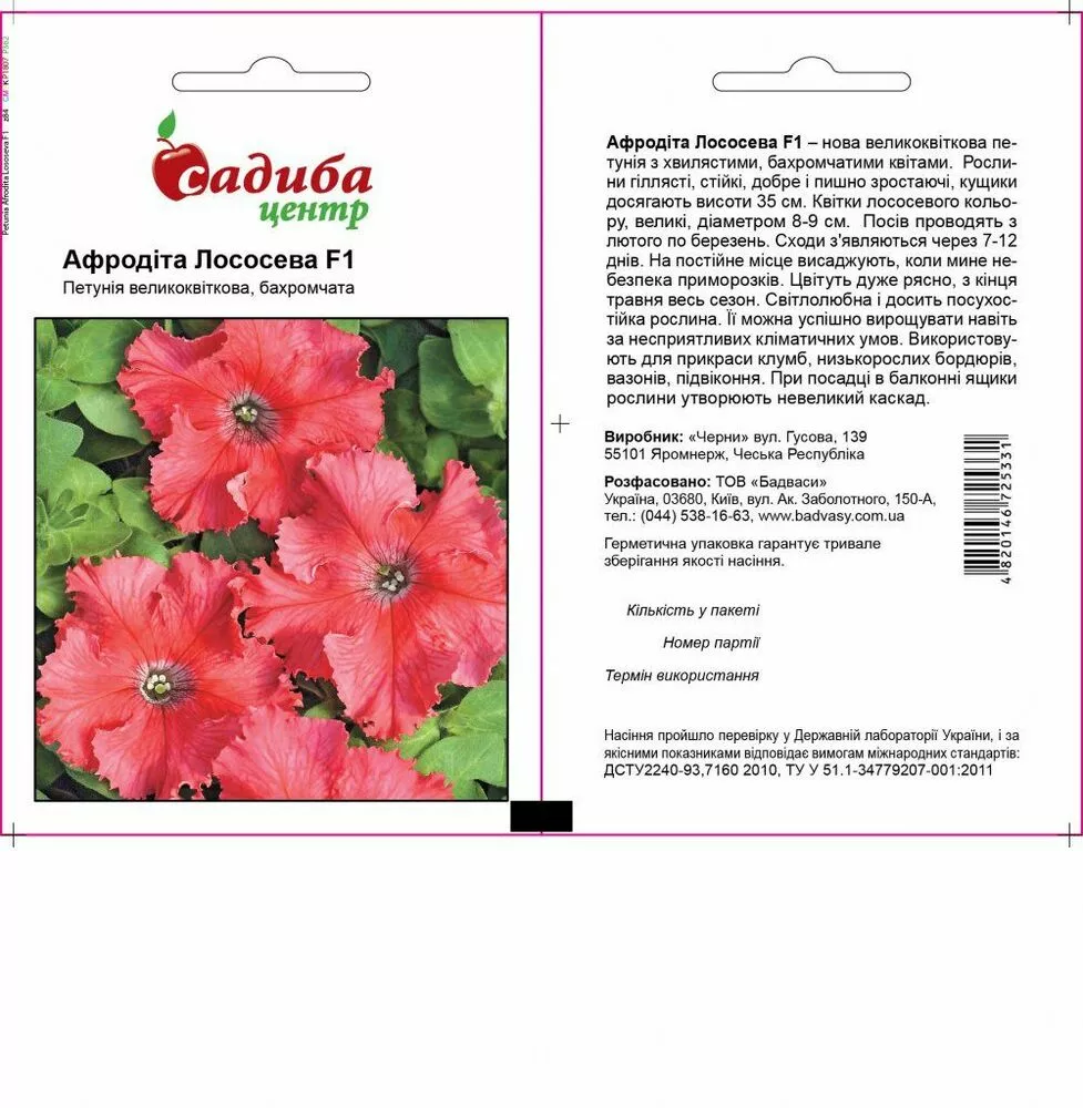 Насіння петунії Афродіта Лососева F1. Група нових гібридних сортів петунії з хвилястими і торочкуватими краями квіток. Рослини стійкі, добре і пишно ростуть.