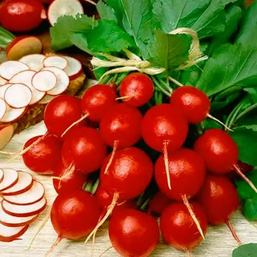 Ранньостиглий урожайний сорт редису, для відкритого грунту і теплиць. Готовий до вживання через 20-23 дня і до 25-30 днів після посіву. Коренеплоди великі, густо-червоного кольору, округлої форми, масою 15-20 г. М'якуш білий, щільний, соковитий, слабо-гострого смаку. Сорт «Сакса» відрізняється дружним дозріванням, однин з найбільш поширених ранніх сортів редису для вирощування в парниках.
