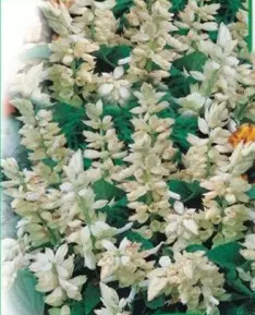 Багаторічна трав'яниста рослина, що вирощується як однорічна, висотою 25-30 см. Пагони потужні, чотиригранні, світло-зеленого кольору. Кущики пірамідальної форми, компактні. Квітки подовжено-витягнутої форми, великі, розміщуються по 2-6 шт., Зібрані в кистеобразное суцвіття довжиною 15-25 см, білого кольору. Цвітіння рясне і тривале - з червня і до заморозків. Рослина світло- і теплолюбна. Добре переносить пересадку. Використовується на клумбах, рабатках, в садових вазах, контейнерах. Прекрасно поєднується з цинерарією, Лобулярія, левовим зевом і лобелією.