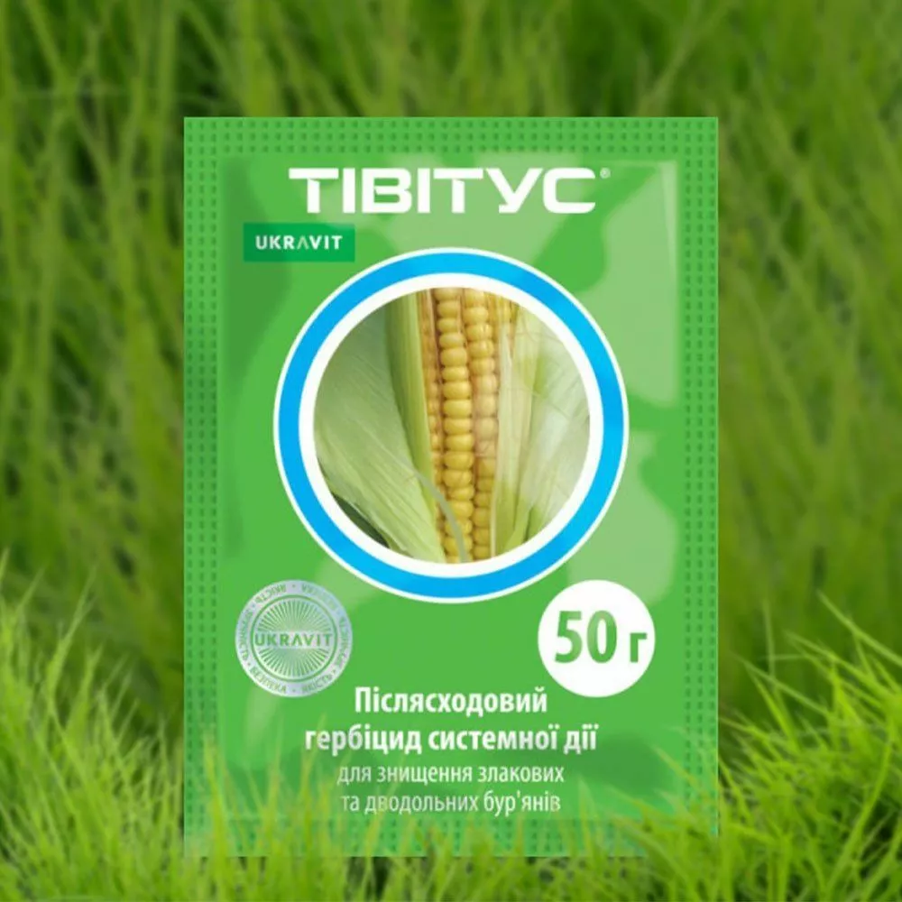 Перед проведенням обприскування необхідно розрахункову кількість препарату (див. табл.) розчинити у чистій воді та ретельно перемішати. Робочий розчин використати в день його приготування, оскільки при довготривалому зберіганні втрачаються властивості препарату, що призводить до зниження ефективності дії проти бур'янів. Обробку проводити за сприятливих погодних умов (відсутність поривчастого вітру, температура повітря не вище +250С, відсутність роси), зазвичай це ранкові (до 10-11) та вечірні (18-22) години. Обприскування необхідно проводити в період початку росту бур'янів (сім'ядолі-дві пари справжніх листочків у дводольних, у однорічних злакових 2-4 листочки, багаторічні злакові за висоти до 10-15 см). Не рекомендується застосування препарату за несприятливих умов (у холодну або дуже жарку погоду, при надмірному зволоженні і в період, коли бур'яни знаходяться в пригніченому стані), а також коли рослини мокрі після випадання опадів. Доцільним є використання в суміші з фунгіцидами ЦІЛИТЕЛЬ або ЗАХИСТ а також з мікродобривом АВАНГАРД ПАСЛЬОНОВІ. При інтенсивному забур’янені посівів кукурудзи рекомендовано застосовувати бакову суміш: ТІВІТУС, 2,5 г + ГОЛІАФ, 60 мл на 15-25 л води на 5 соток з обов’язковим додаванням прилипача ТАНДЕМ 15 мл на 10 л води.