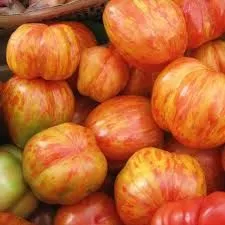Томат Амурський тигр - середньоранній, високоврожайний сорт, рослина індетермінатна. Плоди округлі, масою до 120 г., з характерним забарвленням червоним в жовту смужку. На рослині одночасно утворюються 20-25 плодів, загальною масою 1.1.2 кг.