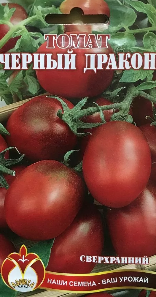 Томат Чорний дракон (Black Dragon Китай) ЧОРНИЙ ДРАКОН - ранній сорт висотою близько 1 м, обвішаний вершками кольором темно-червоного шоколаду; вага плодів до 60 м Помідори дуже смачні, солодкі. Врожайність куща при правильній агротехніці фантастична: до 20 кг і більше.
