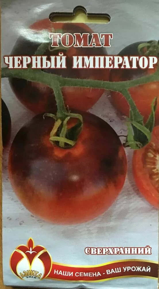Темно-бордові помідори середнього розміру формуються на індетермінантних кущах. Вид виник в Південній Америці і послужив гарною основою для створення інших сортів томата зі схожими характеристиками. Плоди Чорного імператора мають ряд особливостей: ідеальна витягнута форма; насичені відтінки бордового на стадії біологічної зрілості; вага від 90 до 130 гр .; в розрізі помітно середня кількість насіннєвих камер; м'якоть на кілька відтінків світліше, кольору шкірки; поверхню помідора ідеально гладка, відрізняється глянцем, що робить томат зовні цікавим і привабливим.